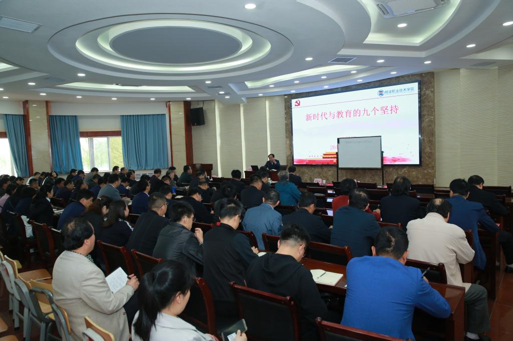 根据学院“不忘初心、牢记使命”主题教育安排,10月14日下午,学院党委副书记、院长王周锁以《新时代与教育的九个坚持》为题,为我院党员干部上了一堂专题党课。