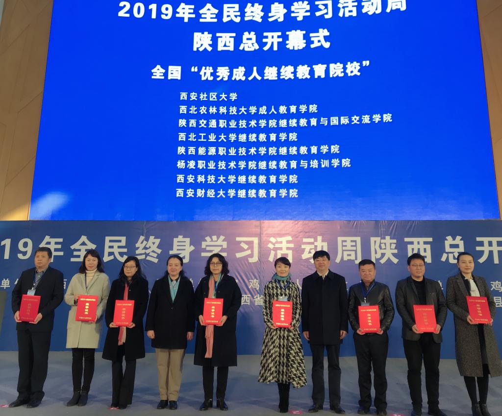 12月6日上午,陕西省2019年“全国终身学习活动周”开幕式在宝鸡举行。陕西省教育厅副厅长朱晓渭出席开幕式并讲话,教育厅职成处处长何玉麒宣读了2019全国“优秀成人继续教育院校”、“百姓学习之星”、“终身学员品牌”获奖名单,我院荣获“全国优秀成人继续教育院校”称号。 本次评选是贯彻《教育部办公厅关于举办2019年全民终身学习活动周的通知》精神,由教育部职成司直属单位中国成人教育协会组织开展“优秀成人继续教育院校”的活动。评选经过各单位推荐、评选、认定、公示等环节,最后评选出相关获表彰单位。