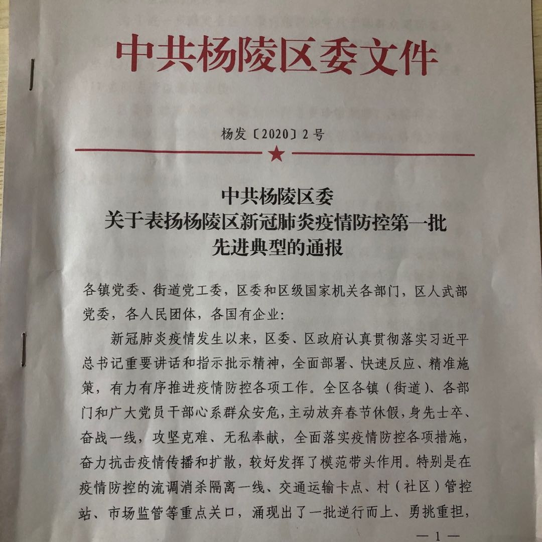 新冠肺炎疫情发生以来,我院一批学子主动请缨赴防疫一线,充分展现了当代大学生的优良品质和杨职学子的精神风貌。近日,我院旅游与管理分院学生郭亚维同学在杨陵区疫情防控志愿工作中表现突出,荣获杨陵区新冠肺炎疫情防控先进工作者。