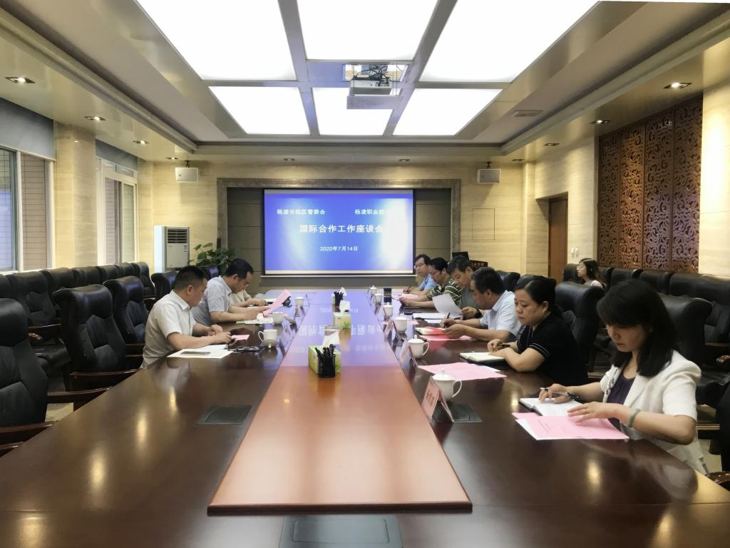 7月14日上午,杨凌示范区国际合作局局长明涛、杨凌示范区农业局(杨凌上合办公室)副局长刘玲一行3人来我院,就国际合作工作进行座谈交流。副院长张迪,党委委员、发展规划处处长张宏辉,国际合作交流处处长杜斌,教务处副处长刘新燕,产教融合处副处长郑爱泉参加了座谈。