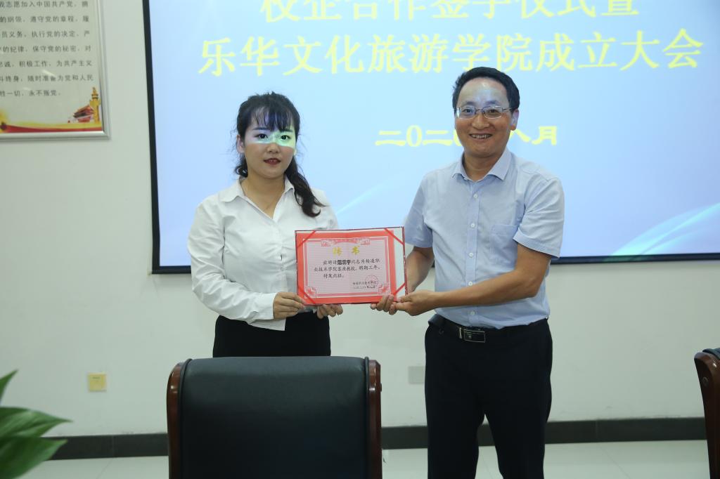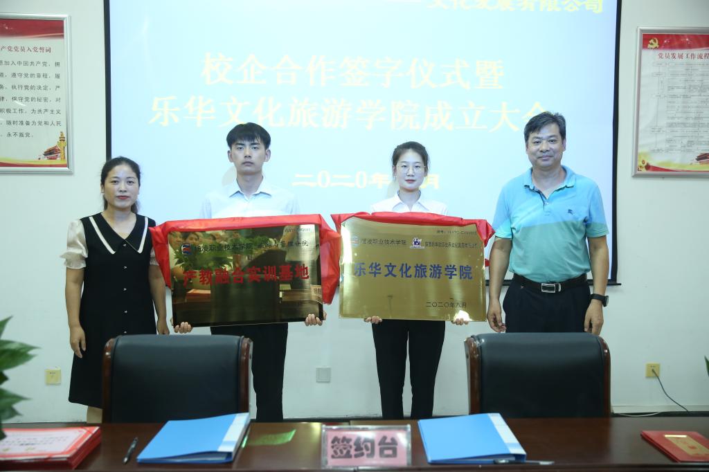 张迪与范蕊宁为“乐华文化旅游学院”和“产教融合实训基地”揭牌