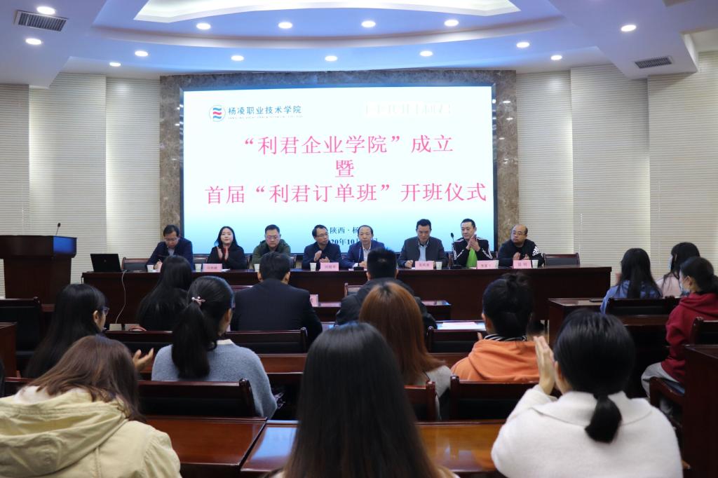 10月30号下午,我校“利君企业学院”成立暨首届“利君订单班”开班仪式在南校区水韵楼报告厅举行。药物与化工分院党总支书记刘根牢、院长周博、副院长龙凤来,西安利君制药有限责任公司人事处处长李俊锋、固体制剂车间技术主任李富平、合成车间技术主任延河、人事处主管司林婧,药学和药品生产技术教研室专业教师以及首届35名订单班学员参加大会。大会由产教融合处副处长郑爱泉主持。