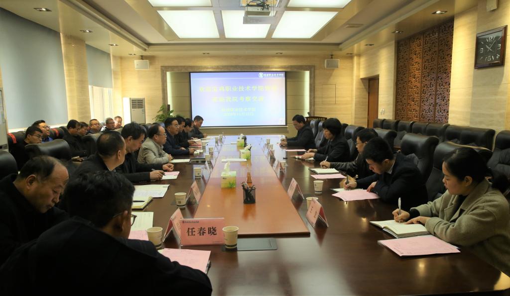 11月13日上午,宝鸡职业技术学院党委常委、副院长宫先成,党委常委、副院长张宏伟一行18人来我校交流学习。党委副书记、纪委书记刘粉莲,党委委员、教务处处长拜存有出席座谈会,会议由党委副书记、纪委书记刘粉莲主持。