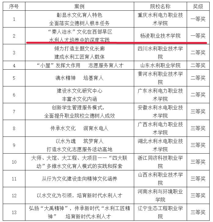 近日,中国水利教育协会公布了全国水利院校水文化育人优秀案例评选结果,我校报送的水文化育人典型案例《“秦人治水”文化在西部旱区水利人才培养中的深度实践》获一等奖。