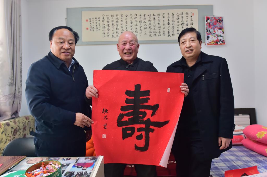 抚今追昔,饮水思源。每到一位老同志家中,校领导们都关切地询问老同志的饮食起居和身体状况,感谢他们为学校事业作出的贡献,认真听取老同志们对学校工作的意见和建议。看到大家身体健康、心情愉快,王周锁很欣慰。他说,去年以来,学校领导班子贯通落实党的十九届五中全会和习近平总书记来陕考察重要讲话指示精神,协调推进“四位一体”战略布局,扎实做好“双高”发展各项工作,实现“十三五”圆满收官,“十四五”科学谋篇,巩固和发展了党建加强、干部培养、三教改革、人才引进、校企合作、产教融合、国际合作、招生就业、后勤保障的好局面,这些成绩的取得,是学校领导班子同全体教职员工团结奋进的结果,同时也凝结着老同志们的心血和汗水。慰问同时,还为85岁以上老同志送上书法家李德君老师题写的“寿”和“福”大字,祝福他们健康长寿,安享晚年。