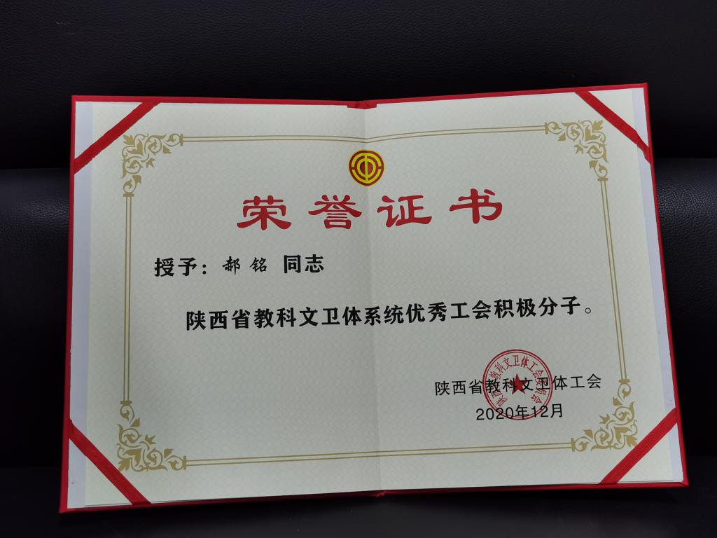 为进一步激发基层工会活力,发挥先进典型的示范引领作用,近期,在陕西省教科文卫体工会一届七次全委(扩大)会议上,我校机电工程分会和两名先进个人受到表彰。其中,机电工程分会获陕西省教科文卫体系统模范职工小家,鄢虹英获陕西省教科文卫体系统优秀工会工作者,郝铭获陕西省教科文卫体系统优秀工会积极分子。