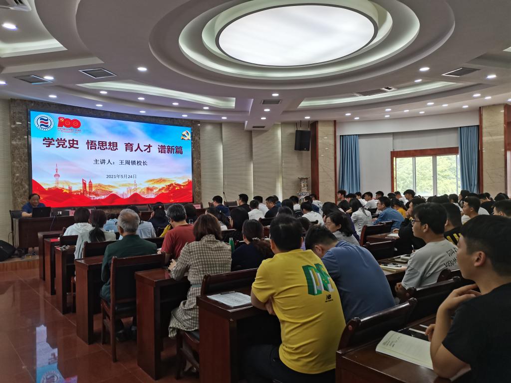 按照学校党史学习教育统一部署,524下午,党委副书记、校长王周锁学党史、悟思想、育人才、谱新篇为题,为水利工程学院教职工和学生党员上了一堂专题党课。党课由水利工程分院党总支书记刘儒博主持。