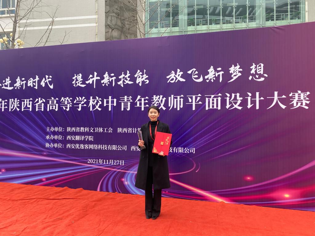 11月27日,2021年陕西省高等学校中青年教师平面设计大赛总决赛落幕。学校工会选送的信息工程学院青年教师王芳娟的作品《百年恰是风华正茂》成功入围决赛,并在现场总决赛中获得一等奖,校工会荣获优秀组织奖。