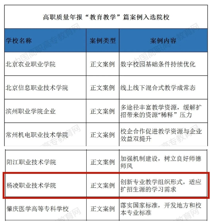 近日,《2021年中国职业教育质量年度报告》典型案例陆续发布,我校报送的“涉农院校发挥技术优势,赋能农民增产增收”专项案例和“创新专业教学组织形式,适应扩招生源的学习需求”正文案例成功入选。