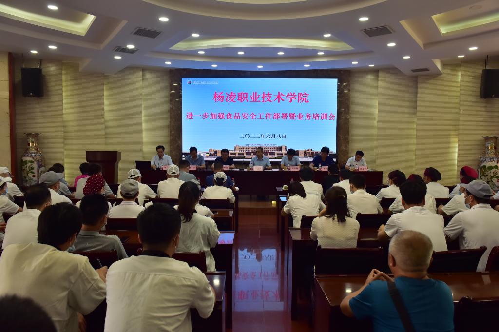 6月8日,学校进一步加强食品安全工作部署暨业务培训会召开。副校长胡俊鹏,党委委员、组织部长田争运,杨凌示范区市场监管局副局长陈峰涛,陕西省市场监管局培训专员范长军,学生处处长陈军峰,保卫处处长周宁,后勤保障处处长侯煜、副处长郭东平等参加了会议。