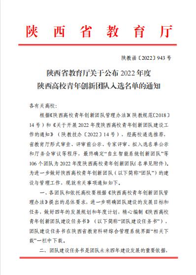 杨振华团队是我校继2020年后第二个入选的陕西高校青年创新团队,将有力推动学校科技创新工作发展,支撑学校“双高计划”建设。