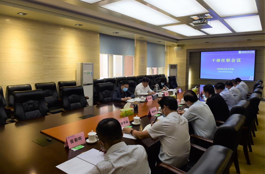 9月26日下午,学校在南校区208会议室召开干部任职会议,宣布省委关于学校领导任免职的决定:王周锁同志任杨凌职业技术学院党委书记,不再担任杨凌职业技术学院院长。