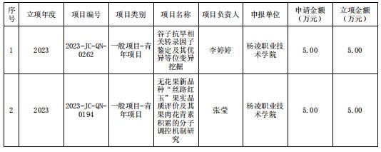 项目申报过程中,我校科教处积极动员、广泛宣传,经过项目负责人申报、科教处审核、杨凌示范区科技局推荐,共申报项目35项,最终获批12项。其中,陕西省自然科学基础研究计划面上项目和青年项目各2项,陕西省重点研发计划一般项目8项,共获批经费84万元,项目立项数与经费数均创历史新高。