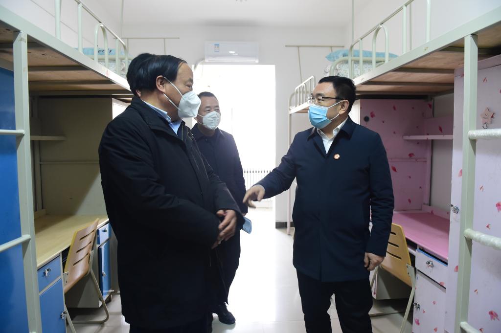 督查组一行现场督查了学生餐厅、学生宿舍、保卫处、校医院和健康驿站等地,听取了开学前准备、开学后服务保障和教学安排等方面情况的汇报,并对宿舍管理、消防安全、门禁管理、各类制度建立、健康驿站建设、校医院管理、饮用水管理、餐厅管理等校园安全工作进行了重点督查。