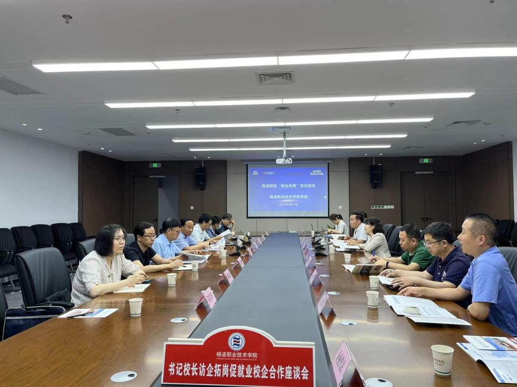 在秦创原人才大市场,王周锁一行分别与西咸新区党工委人才办专职副主任、新区社会事业服务局副局长赵宏庆、西咸新区人力资源服务中心副主任杨蕊、西咸新区人力资源服务中心就业组组长谢玉立及西咸新区多家企业代表进行座谈。会上,就持续培养高素质技术技能人才,科研合作创新,深化毕业生优质就业,解决企业用人需求等方面进行了全方位交流。