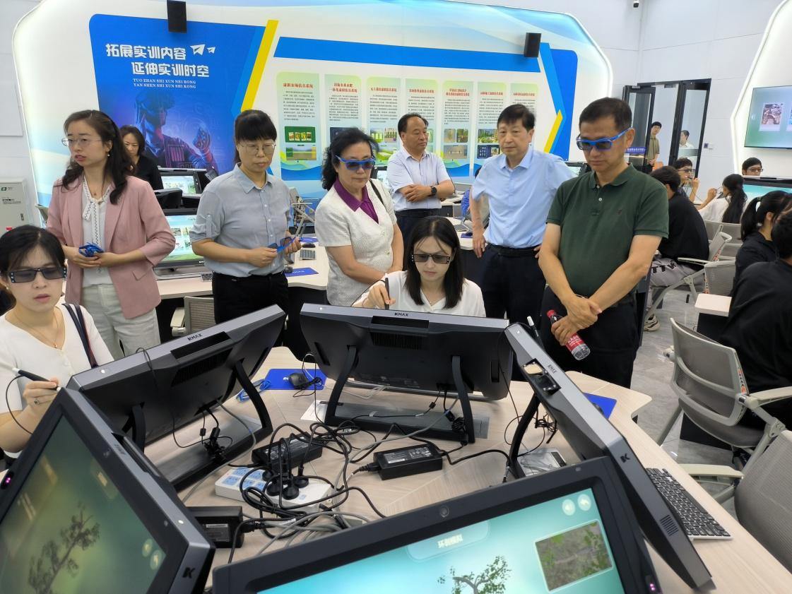 在实地调研中,专家组一行重点参观考察了智慧农业虚拟仿真实训基地、农林综合实训基地、动物解剖虚拟仿真实训中心、建材检测虚拟仿真实训中心等实训基地(中心)的建设和运行情况。