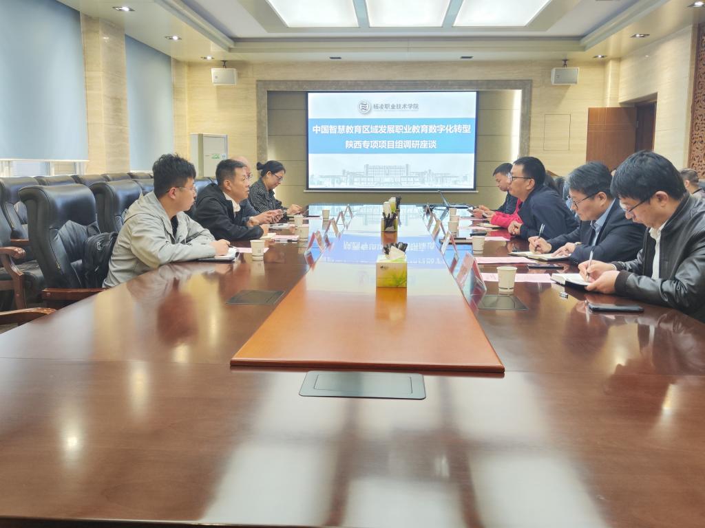 10月17日上午,中国智慧教育区域发展职业教育数字化转型陕西专项项目组专家郭为一行4人到我校开展专题调研。副校长蒋平江、教务处处长刘新燕、信息化建设与管理处处长夏浩军、水利分院副院长郭旭新及相关人员参加会议。会议由蒋平江主持。