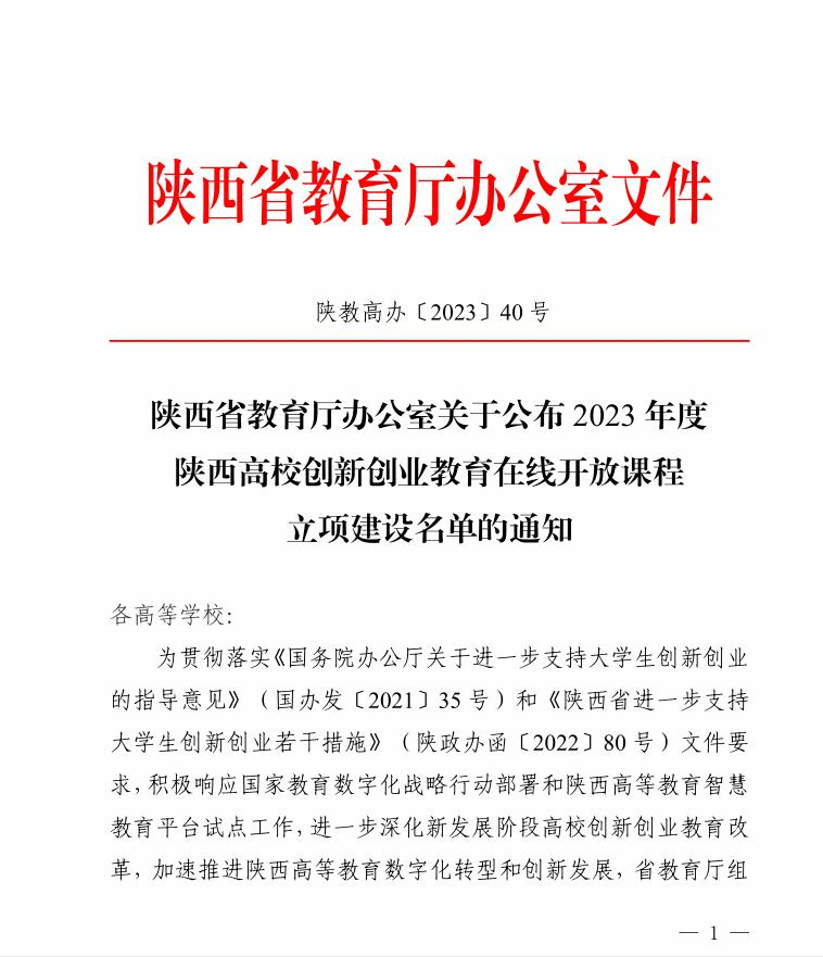 学校将以本次立项为契机,通过建设创新创业教育在线开放课程,引导校内构建以数字化为特征的创新创业教育课程体系,为陕西高等教育智慧教育平台提供更多优质资源,为培育更优质的创新创业型人才奠定坚实基础。