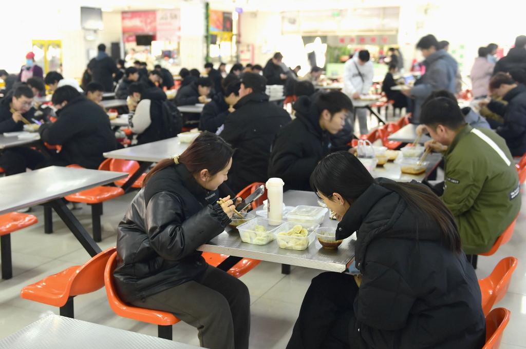 南校区餐厅学生们正在吃饺子
