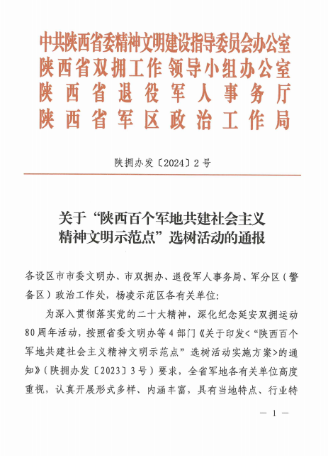 2月18日,陕西省委精神文明建设指导委员会发布了“陕西百个军地共建社会主义精神文明示范点”选树活动的通报,我校与共建部队荣获示范点称号。