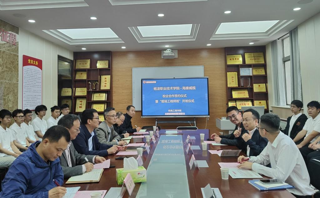 4月16日上午,学校举行海康威视校企合作签约暨“现场工程师班”开班仪式。副校长蒋平江,机电工程学院负责人,杭州海康威视供应链中心人力资源部总经理刘锴,高级招聘经理胡伟、洪枭楠等参加开班仪式。