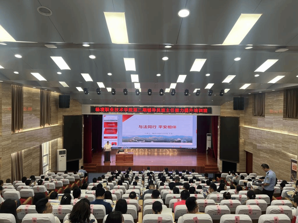 5月17日下午,学校举办第二期辅导员班主任能力提升培训班。副校长张朝晖,杨凌示范区安委办副主任唐灏文、公安局刑警支队副支队长刘通出席活动。