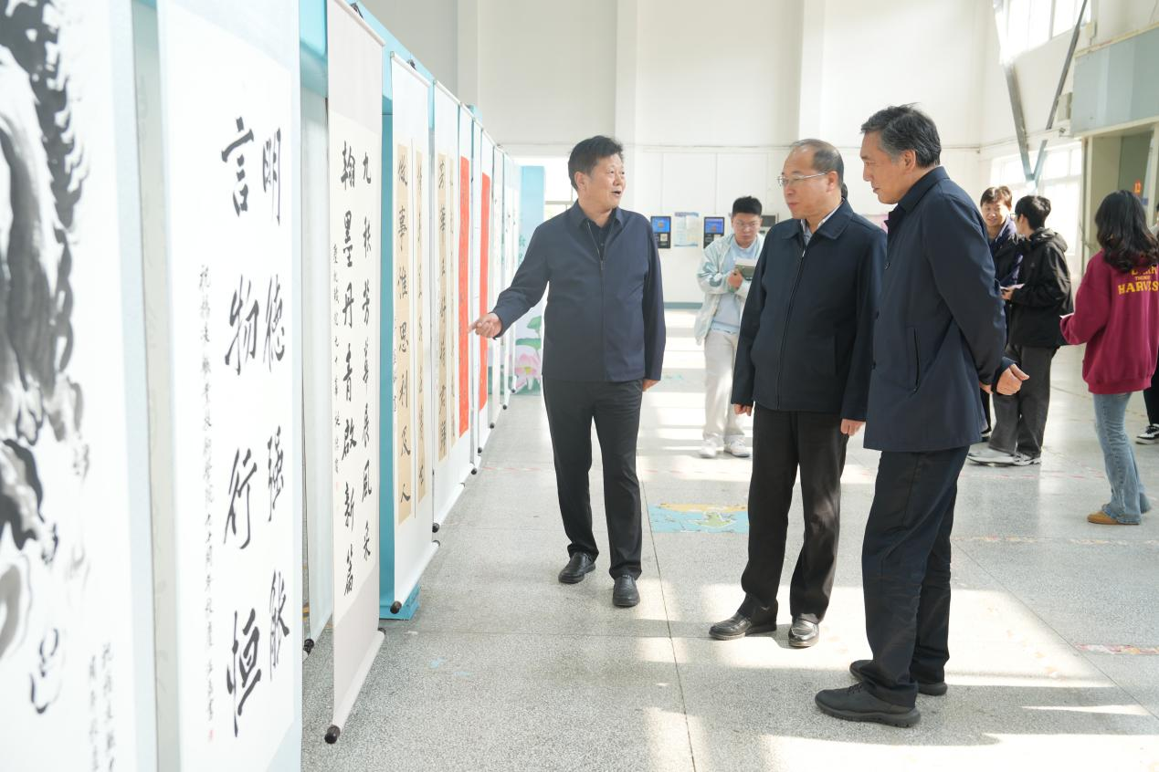 为庆祝建校九十周年,深入展示学校深厚的办学历史、丰富的文化积淀和卓越的发展成就,突出展现广大师生和校友的精神风貌和艺术风采,11月6日至7日,学工部、团委成功举办了为期2天的“九秩华章·翰墨薪传”书画展。党委书记韩明军,校长仲伟周,党委副书记刘瑞明,副校长张朝晖到场参观指导。
