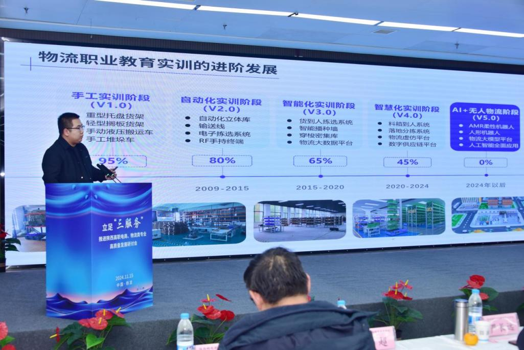 刘清代表陕西省职教学会电子商务、物流类专业教学指导委员会致辞,他指出,陕西省教指委积极发挥桥梁纽带作用,有力促进院校和行业、企业交流合作,在教育教学改革中取得了显著成果,将以办学能力高水平、产教融合高质量为目标,以全面深化产教融合、校企合作为关键,以提升育人质量和社会服务能力为核心,推动电商物流类专业办学与国家战略布局相结合、与重点产业需求相结合、与地方经济社会发展相结合、与促进人的全面发展相结合,为适应陕西现代化产业体系建设需要、培育壮大新质生产力和实现中国式现代化贡献力量。