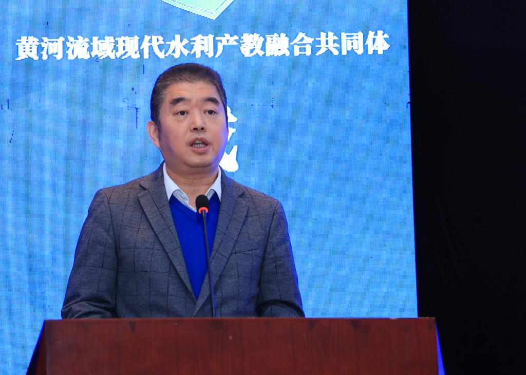 张斌成代表陕西省水利厅致辞,他对黄河流域现代水利产教融合共同体的未来发展提出了三点希望,一是希望共同体能够成为水利创新与人才培养的高地;二是希望共同体能够成为水利教育与产业融合发展的典范;三是希望共同体能够成为传承黄河文化、弘扬水利精神的重要载体。