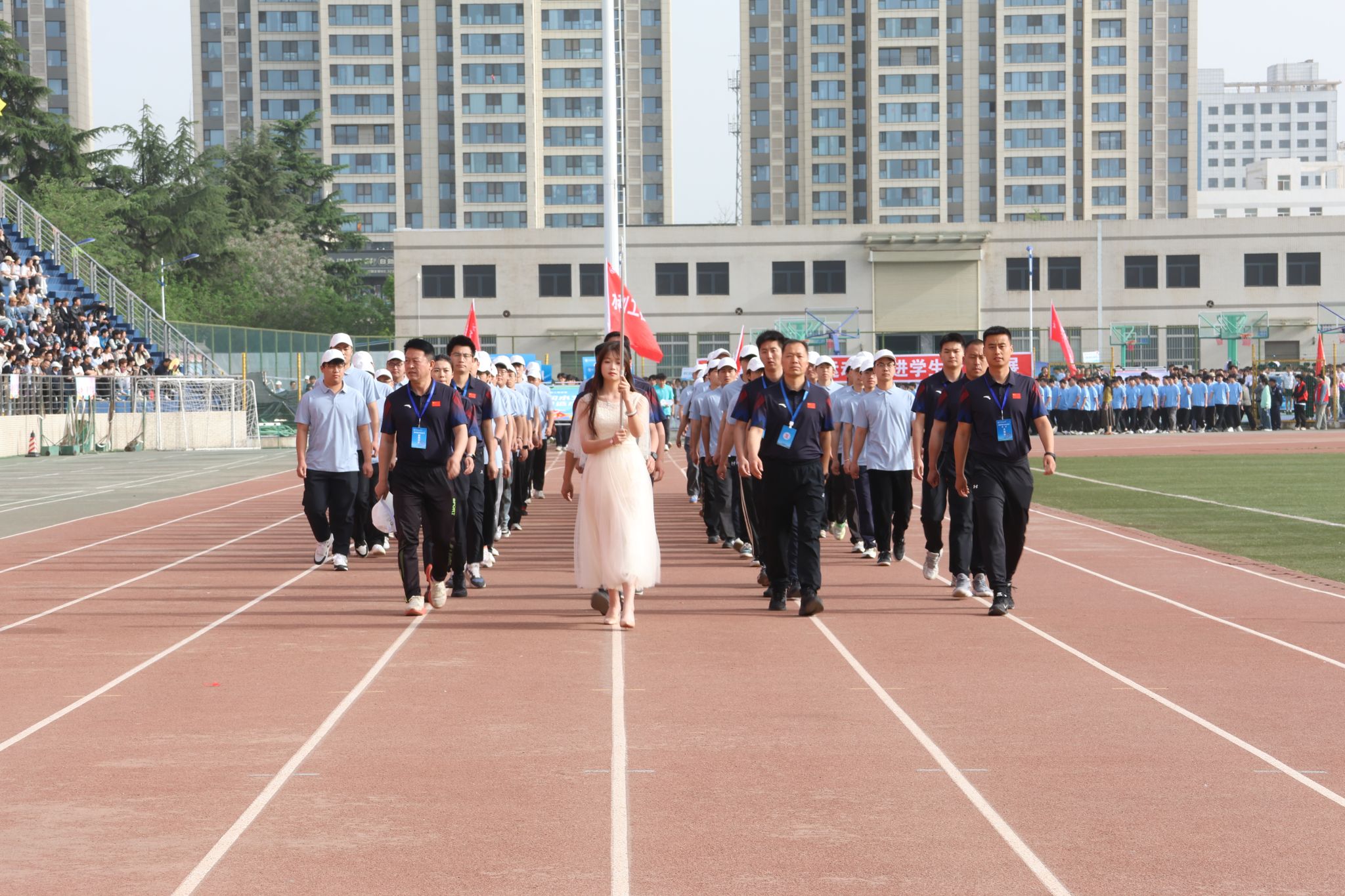4月22日上午8点30分,伴随着气势磅礴的《运动员进行曲》,国旗护卫队、军鼓队、腰鼓方阵、花束方阵、扇子方阵、彩旗林队、裁判员方阵和各二级学院代表队依次入场。国旗飘扬,鼓声激昂,鼓点铿锵,青年学子精神抖擞、意气风发。扇子舞灵动飘逸,花束方阵尽显青春活力,广播体操表演动作规范、整齐划一。他们精神饱满、朝气蓬勃,展现着杨职人奋斗不息的深厚底蕴与敢为人先、团结协作、追求卓越的体育精神。