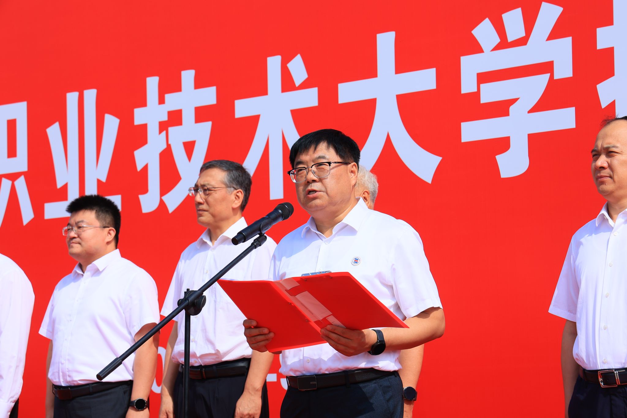 仪式上,黄思光、史高领、吴振磊、韩明军共同为陕西农林职业技术大学揭牌。吴振磊宣读了教育部批复文件。仲伟周代表学校致辞,并表示学校将站在新的历史起点上,坚定不移贯彻党的教育方针,以立德树人为根本,以强农兴农为己任,为加快建设“中国特色、世界一流职业大学”而不懈奋斗,在服务陕西和国家建设、推动农业农村现代化的时代新征程上,续写学校事业发展的恢宏新篇章。刘瑞明宣读了西北农林科技大学、杨凌示范区贺信。