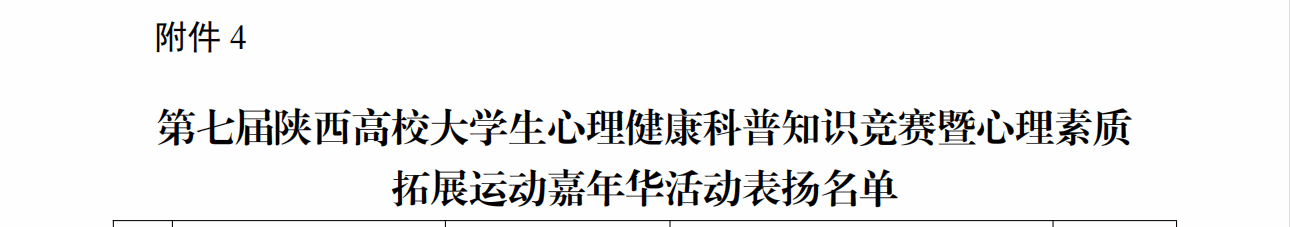 近日,省委教育工委对第十届陕西高校“阳光护航”心理育人宣传季省级实践活动成果展示表现突出师生进行表扬,我校获一等奖1项、二等奖1项、三等奖2项、优秀奖1项。