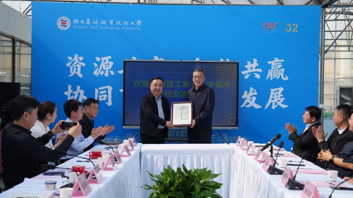 白继中对学校的办学成绩表示祝贺,并介绍了新疆理工职业大学的办学定位、发展现状与未来规划。他表示,作为一所新疆生产建设兵团新近组建的职业本科大学,新疆理工职业大学在国家部委和兵团党委的大力支持下,在各兄弟院校的无私帮助下,正处于高速建设期,但在学科建设、人才培养和师资队伍建设等方面还亟待加强和提升,希望依托教育部“大团组+小团组+专业包建”援助机制,邀请陕农大参与支援共建,为学校高质量发展注入新动力。