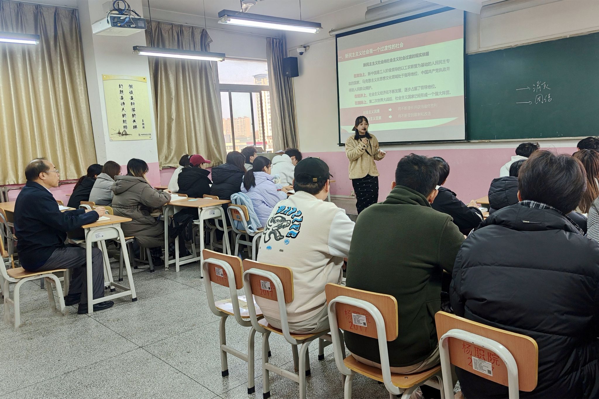 11月13日上午,校长仲伟周深入思政课堂,与建筑工程学院造价24178班学生共同听取了马克思主义学院教师薛敏讲授的《毛泽东思想和中国特色社会主义理论体系概论》课程,并指导调研思政课建设。