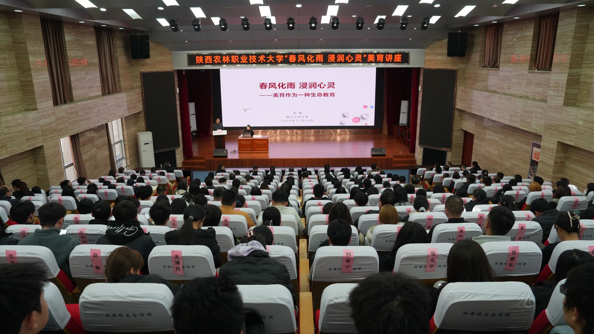 此次报告高屋建瓴、深入浅出,既有理论的深度,又有实践的广度,更有情感的温度,不仅是一次高水平的美育理论讲授,更是一番沉浸式的思想启迪。学校将继续坚持“以美育人、向美而行”理念,举办更多高质量的文化艺术活动,营造和谐高雅的校园文化氛围,将美育工作融入到学校专业教育、课程教学、管理服务工作中,进一步完善育人体系,为培养有品位、有情怀、有创造力的高素质技术技能人才奠定坚实基础。