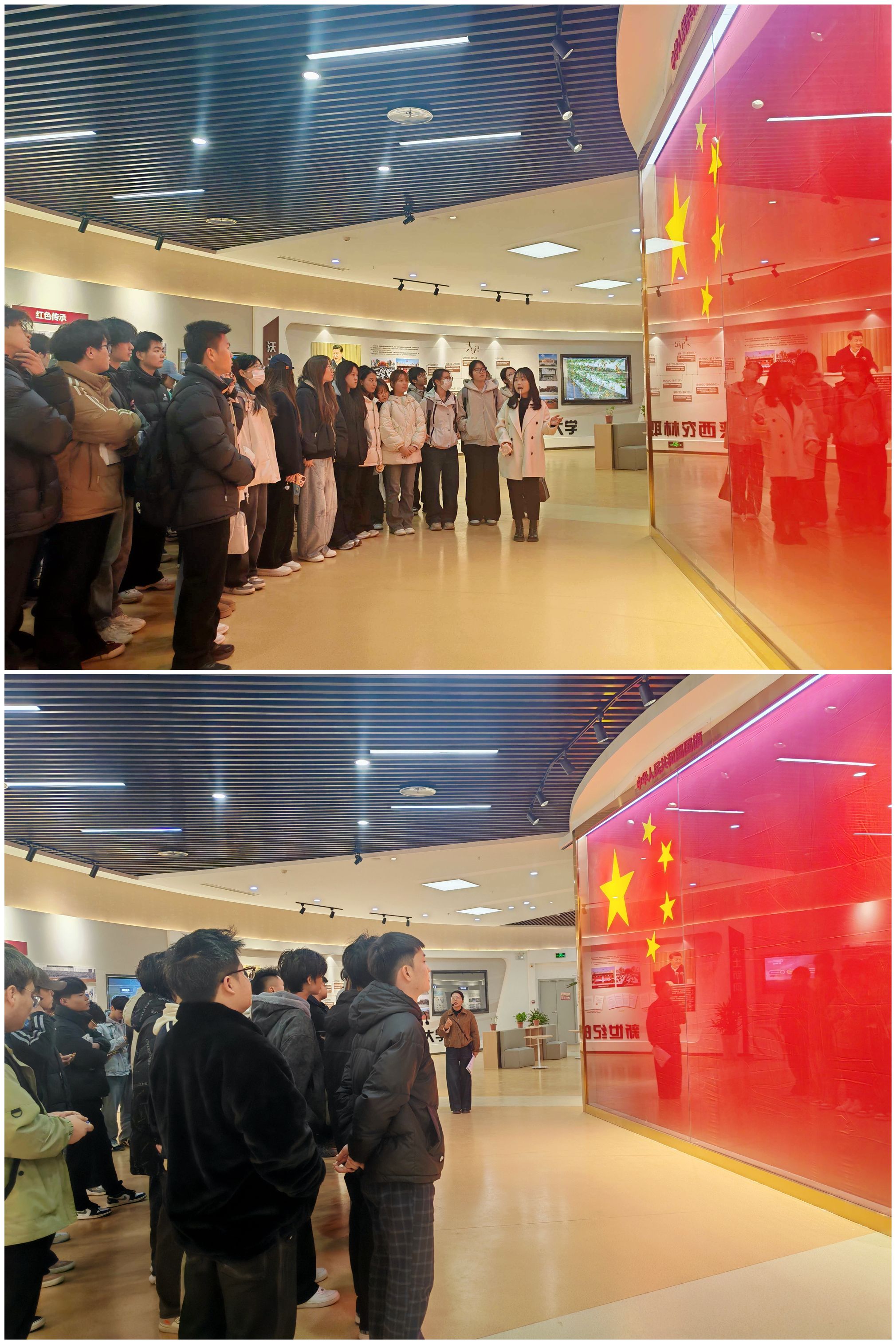 在编号2025-0160这面具有特殊意义的国旗前,马克思主义学院思政课教师以实物为教材,向同学们生动讲述了五星红旗诞生的历史脉络、设计元素所蕴含的深刻寓意、国旗法规的重要意义,以及其作为国家象征所承载的尊严与民族精神。