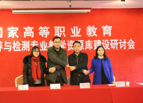 2018年7月,我院“食品营养与检测专业教学资源库”获批2018年国家级职业教育专业教学资源库建设项目。截至目前,我院主持国家专业教学资源库3项,主持省级专业教学资源库3项。 (图为签订项目共建协议)