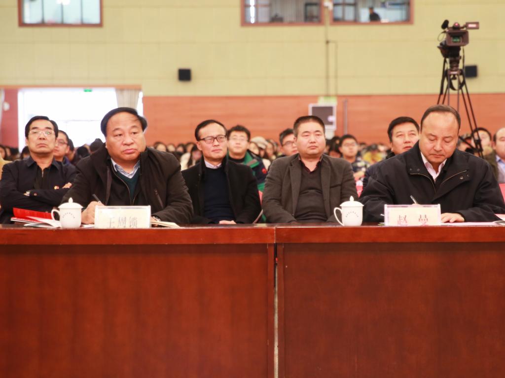我院党委书记赵曼,党委副书记、院长王周锁,党委副书记任得元,副院长张永良,纪委书记刘粉莲,处科级干部,思政课部教师,各分院教师代表、学生代表400余人共同聆听了报告会。