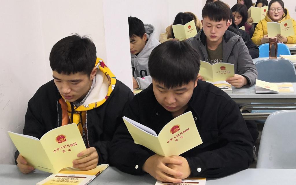 在水韵楼二楼报告厅,建筑工程分院全体教职工共同学习了《中华人民共和国宪法》全部内容,并结合教育教学工作实际,从弘扬宪法精神、维护宪法权威,以及增强尊崇宪法、学习宪法、遵守宪法、维护宪法、运用宪法的意识等方面展开讨论。