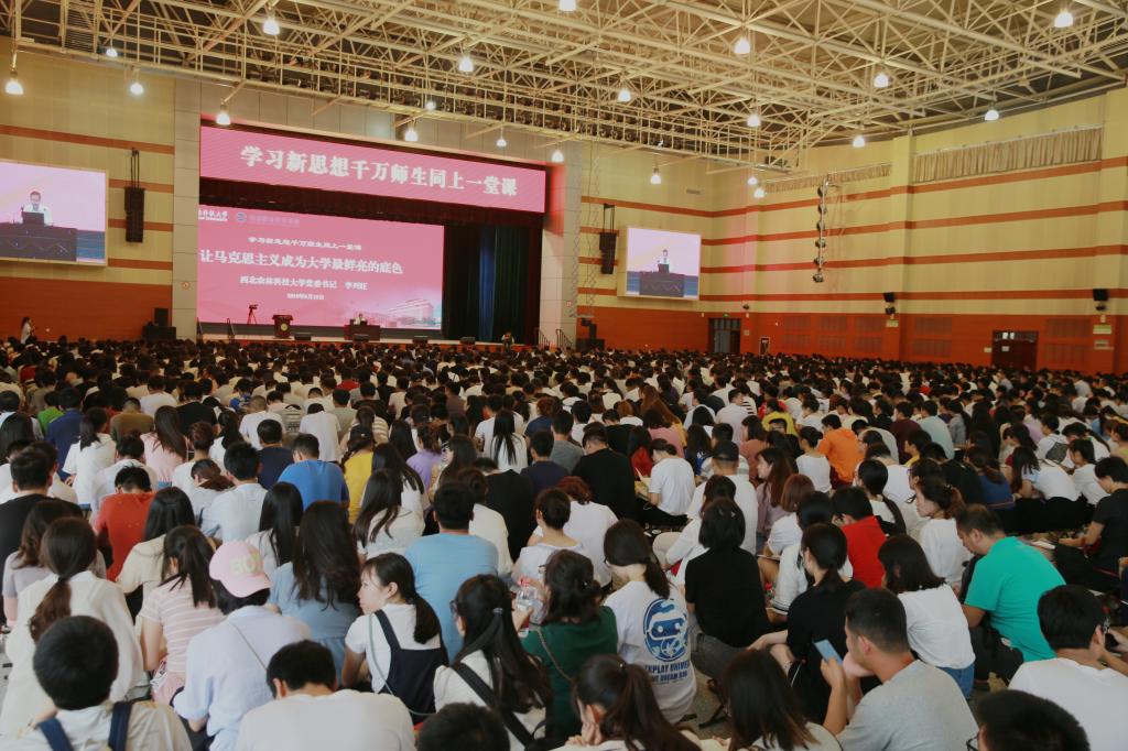 为深入学习宣传贯彻习近平总书记在北京大学师生座谈会和纪念马克思诞辰200周年大会上重要讲话精神,按照教育部部署和省委高教工委要求,6月15日下午,我院与西北农林科技大学一起,在西北农林科技大学北绣山活动中心组织开展了“学习新思想,千万师生同上一堂课”活动。西北农林科技大学党委书记李兴旺为广大师生作了题为《让马克思主义成为大学最鲜亮的底色》的报告。西安交通大学马克思主义学院院长燕连福教授为广大师生作了题为《学习马克思,建功新时代》的报告。