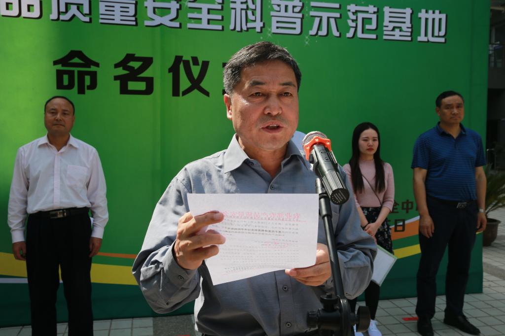 农业农村部农产品质量安全中心副主任寇建平宣读《关于同意将杨凌职业技术学院确认为全国农产品质量安全科普示范基地的复函》
