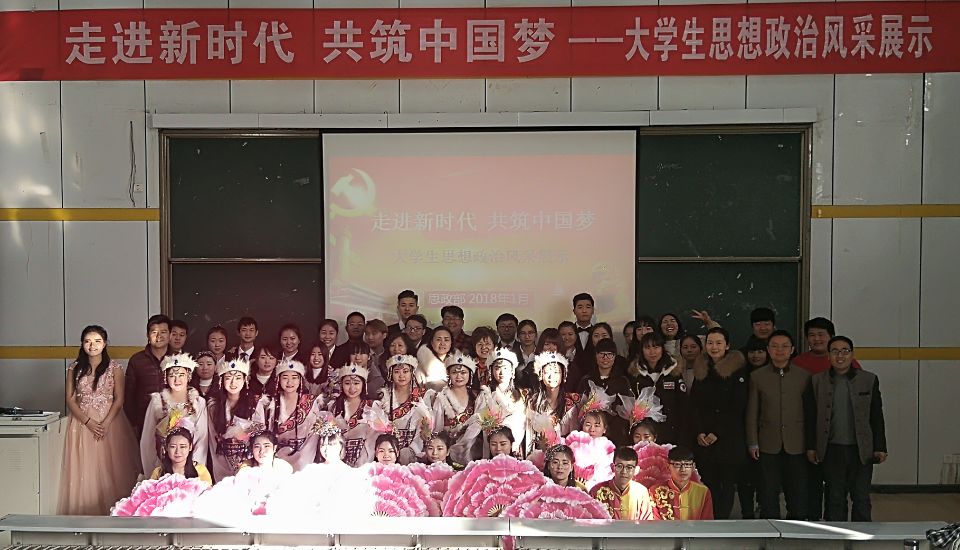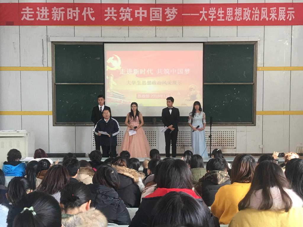 为丰富思想政治理论课的教育教学内容和方式,调动同学们的学习热情,提高思政课的教学效果,1月8日下午,思想政治理论课教学部在西校区台阶教室开展了一次学习党的十九大精神主题风采展示活动“走进新时代,构筑中国梦——大学生思想政治风采展示” ,全院二年级学生参加了活动。