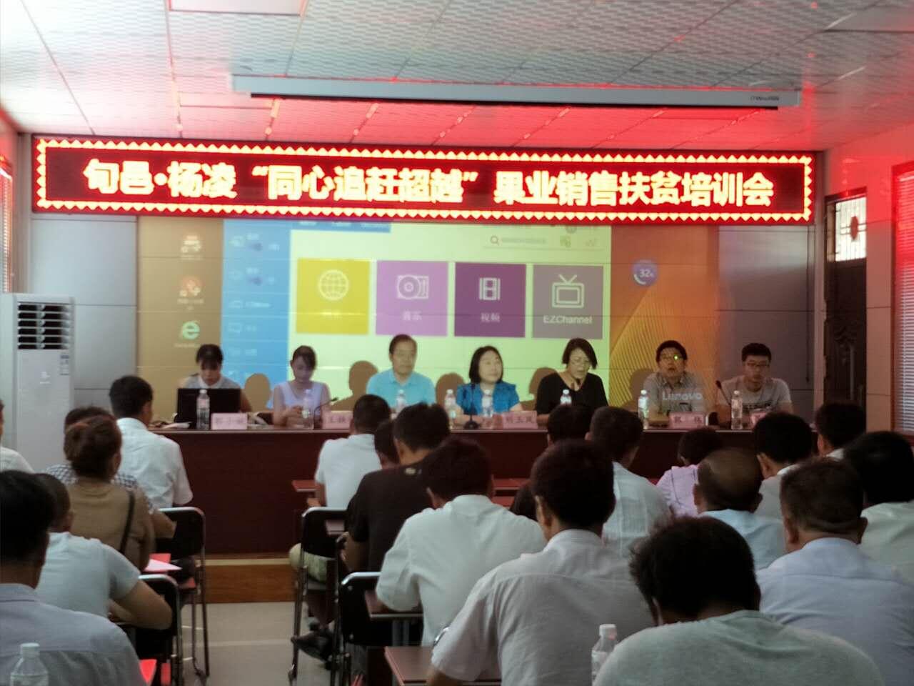 7月25日,学院组织统战部组织民盟杨凌职业技术学院委员会负责人、经济与贸易分院负责人以及6名教师、学生,杨凌卓伊电子商务有限公司、杨凌纵点电子商务有限公司等企业的技术人员,赴旬邑开展“追赶超越”助力旬邑经济发展及脱贫攻坚培训活动。旬邑农牧局组织100多名果农及相关技术人员参加了培训。