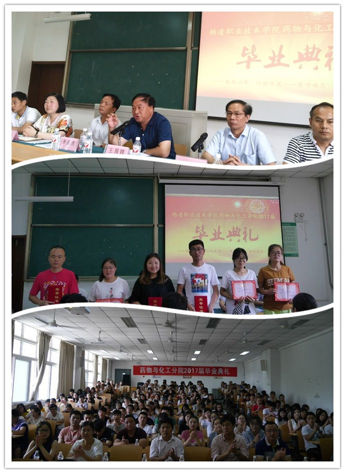 6月16日,药物与化工分院在乐农楼举行了2017届毕业典礼,学院院长王周锁出席,学生处处长、分院党总支书记、院长、教师代表以及全体毕业生参加。