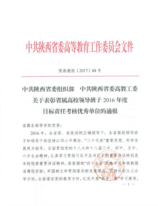 5月23日,省委组织部、省委高教工委对2016年度目标责任考核优秀等次的14所高校予以通报表彰,我院获省属高等学校领导班子2016年度目标责任考核优秀单位。这是我院继2015年度后,再次荣获此荣誉。