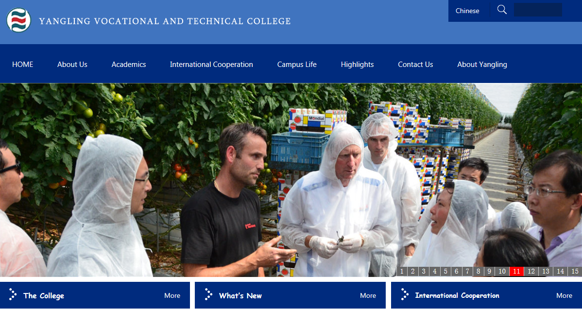 学院英文网站包括学院介绍、二级分院介绍、国际合作情况介绍、校园生活、亮点新闻及杨凌介绍等栏目,该网站的开通标志着学校又开通了一扇向世界展示形象的窗口。