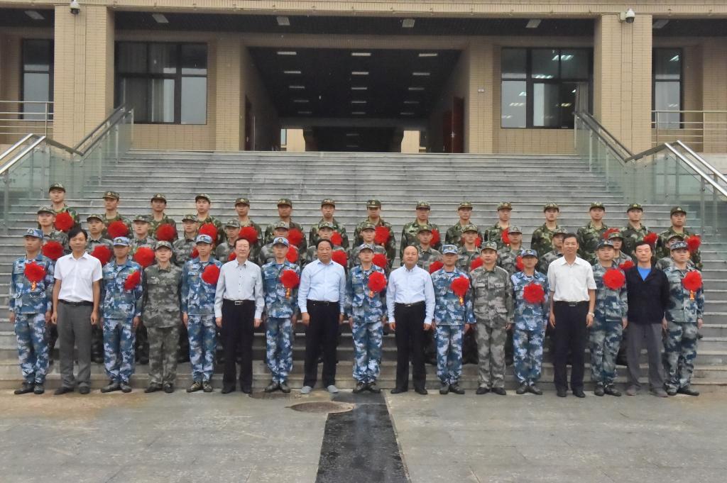 学院领导及人武部有关同志与入伍学生合影