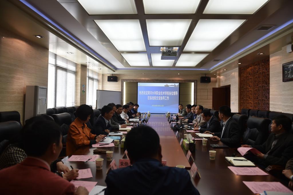 4 月21日 上午,黄河水利职业技术学院党委书记许琰一行12人来院访问交流。学院党委书记赵曼、副院长张永良、张迪在醒钟楼A208会议室会见了客人并举行座谈。党政办公室、人事教师处、教务处、机电工程分院、交通与测绘工程分院、水利工程分院等相关部门负责人参加座谈会。