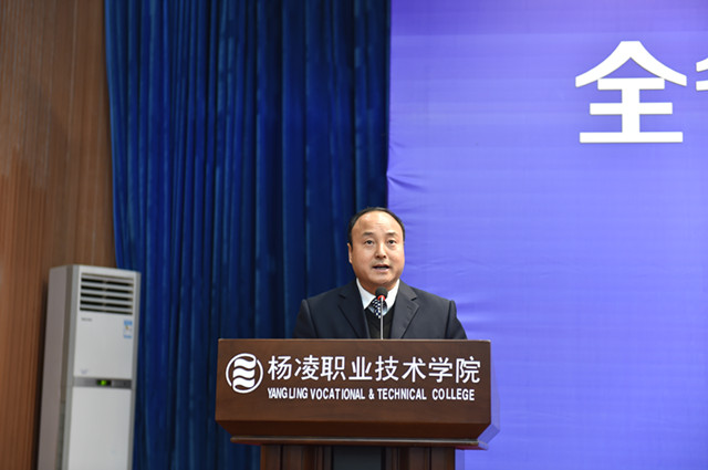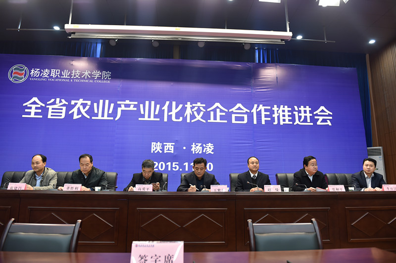 为进一步促进全省农业产业化龙头企业转型升级,构建产学研一体化的特色现代农业支撑体系,进一步推进农业产业化企业与杨凌职业技术学院的校企深度合作,11月20日,由省农业厅和我院共同主办的全省农业产业化校企合作推进会在我院举行。省农业厅副厅长高爱平,省教育厅副厅长王紫贵,示范区管委会主任助理董胜利,学院党委书记赵曼出席并致辞,学院党委副书记、院长王周锁主持推进会。
