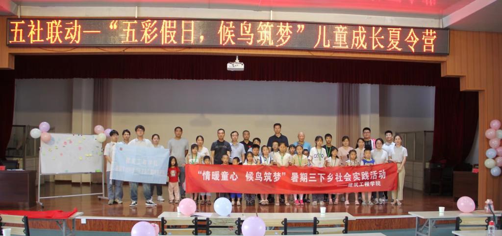 7月8日上午,建筑工程学院党总支副书记、副院长王琦,分团委书记、学工办主任张齐及“情暖童心、候鸟筑梦”三下乡社会实践团队指导老师杨英、朱燕和学生志愿者共计10人组成暑期社会实践小分队,来到杨凌区大寨街道梁氏窑社区组织参与“五彩假日、候鸟筑梦”夏令营开营仪式。